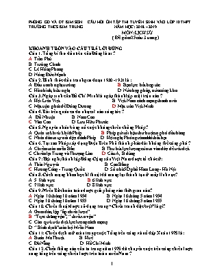 Tóm tắt nội dung tài liệu: Câu hỏi ôn tập thi tuyển sinh vào Lớp 10 THPT môn Lịch sử - Đề 1 - Năm học 2018-2019 - Trường THCS Kim Trung (Có đáp án)