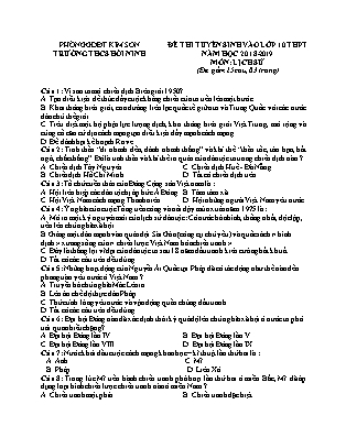 Tóm tắt nội dung tài liệu: Đề thi tuyển sinh vào Lớp 10 môn Lịch sử - Đề 2 - Năm học 2018-2019 - Trường THCS Hồi Ninh (Có đáp án)